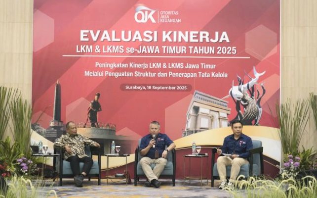 Otoritas Jasa Keuangan (OJK) Provinsi Jawa Timur menyelenggarakan acara Evaluasi Kinerja Lembaga Keuangan Mikro (LKM) dan Lembaga Keuangan Mikro Syariah (LKMS) Se-Jawa Timur Tahun 2025 dengan tema “Peningkatan Kinerja LKM & LKMS Jawa Timur Melalui Penguatan Struktur dan Penerapan Tata Kelola.” Acara ini dihadiri oleh Kepala OJK Provinsi Jawa Timur, Kepala OJK Malang, Kediri, dan Jember, perwakilan Direktorat Pengaturan Lembaga Pembiayaan, Perusahaan Modal Ventura, LKM, dan LJK Lainnya (DPUV), Ketua Asosiasi LKM dan LKMS Indonesia (Aslindo), serta perwakilan pengurus LKM/LKMS wilayah Jawa Timur.
