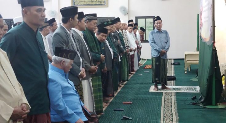 Majelis Wakil Cabang Nahdlatul Ulama (MWCNU) Kecamtan Gubeng menggelar sholat goib, sholat taubah, sholat hajat dan istighosah di peringatan Hari Santri 2025, Jumat (24/10) di Masjid Maulani Dahlan, Mojo, Surabaya.