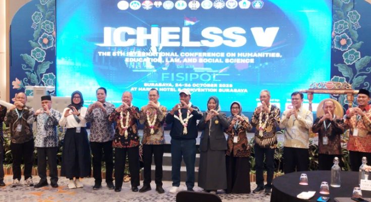 Fakultas Ilmu Sosial dan Ilmu Politik (FISIPOL) Universitas Negeri Surabaya (Unesa) bersama Himpunan Sarjana Pendidikan Ilmu-Ilmu Sosial (HISPISI). menggelar Konferensi Internasional: Conference Book, The 5th International Conference on Humanities, Education, Law, and Social Science (ICHELSS V) 2025, Sabtu (25/10) di Hotel Harris Surabaya.