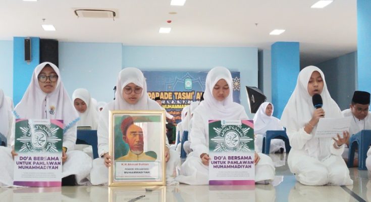 Setelah membuka kegiatan Tasmi, Choirur bersama Kepala Spemma Misbach Noehruddin MM beserta guru dan para siswa menggelar doa bersama menyambut Hari Pahlawan.