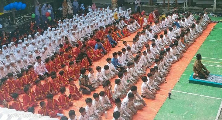 Lebih dari 450 murid SD Muhammadiyah 6 Gadung (SD Musix) Surabaya merayakan peringatan Milad ke-113 Muhammadiyah dengan menggelar sujud syukur, Jumat (7/11) di halaman sekolah.