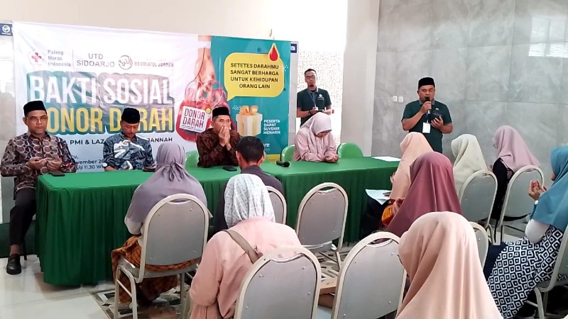 Lembaga Amil Zakat (LAZ) Raudlatul Jannah menggelar bakti sosial donor darah, Sabtu (8/11) di lantai 4 Gedung SMP Raudlatul Jannah Sidoarjo. Tercatat ada 100 peserta yang berpartisipasi. Donor darah ini juga berkolaborasi dengan Palang Merah Indonesia (PMI), UTD Sidoarjo.