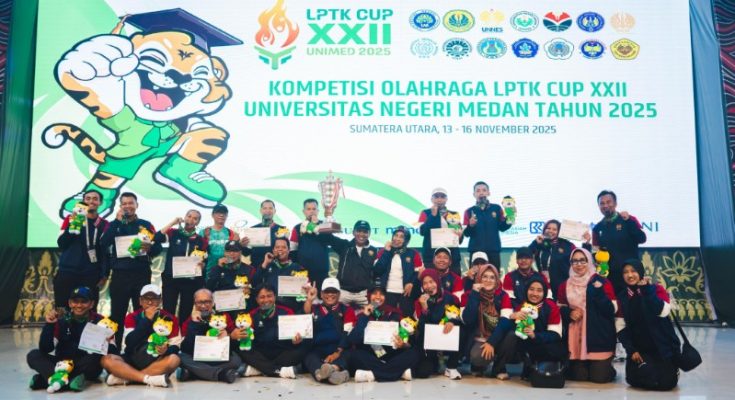 Universitas Negeri Surabaya (Unesa) meneguhkan reputasinya sebagai salah satu kampus yang unggul dalam bidang olahraga setelah keluar sebagai Juara Umum LPTK Cup XXII 2025 yang digelar di Universitas Negeri Medan (Unimed) pada 12-15 November 2025.