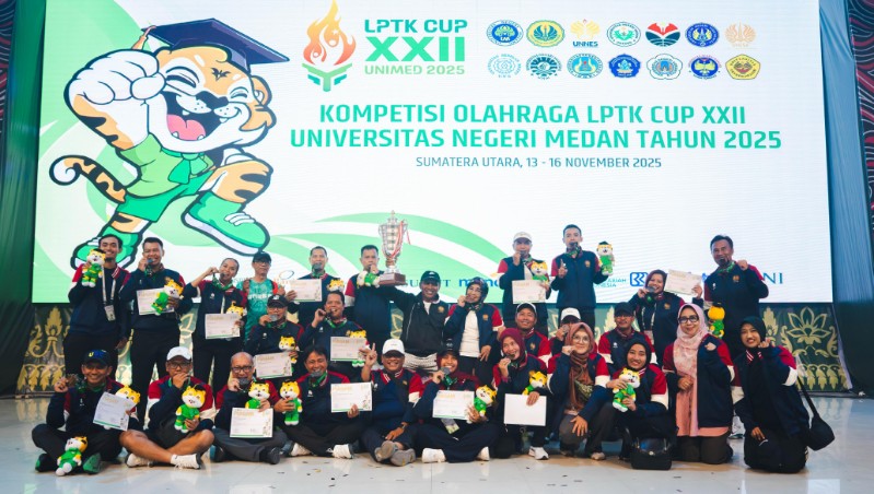 Universitas Negeri Surabaya (Unesa) meneguhkan reputasinya sebagai salah satu kampus yang unggul dalam bidang olahraga setelah keluar sebagai Juara Umum LPTK Cup XXII 2025 yang digelar di Universitas Negeri Medan (Unimed) pada 12-15 November 2025.