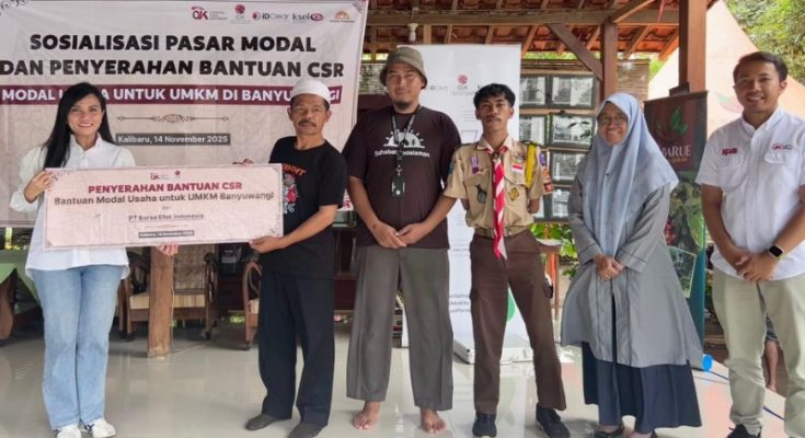 PT Bursa Efek Indonesia (BEI) dan Otoritas Jasa Keuangan (OJK) menggelar Sosialisasi Pasar Modal sekaligus penyerahan bantuan tambahan modal bagi pelaku UMKM Disabilitas di Pendopo X-Barue Coffee, Desa Kalibarumanis, Kecamatan Kalibaru.