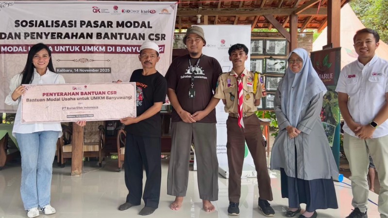 PT Bursa Efek Indonesia (BEI) dan Otoritas Jasa Keuangan (OJK) menggelar Sosialisasi Pasar Modal sekaligus penyerahan bantuan tambahan modal bagi pelaku UMKM Disabilitas di Pendopo X-Barue Coffee, Desa Kalibarumanis, Kecamatan Kalibaru.