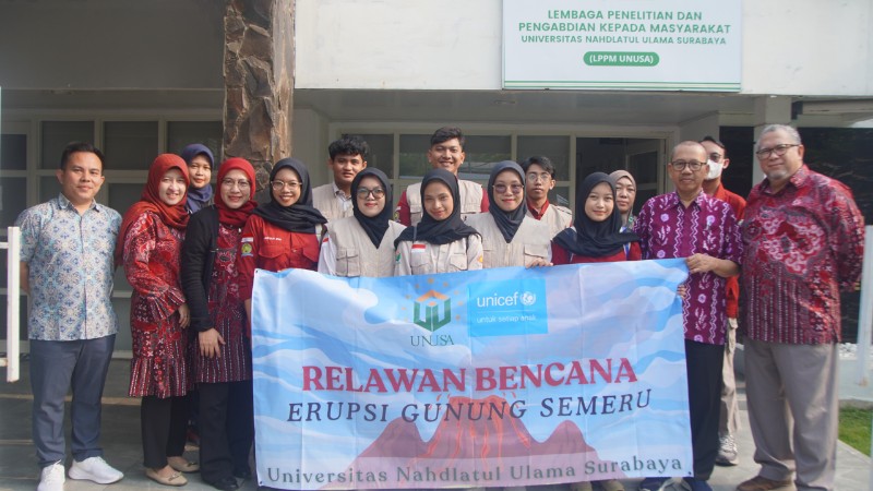 Universitas Nahdlatul Ulama Surabaya (Unusa) mengirimkan Tim Relawan Bencana untuk membantu masyarakat terdampak erupsi Gunung Semeru, Rabu (26/11) dari Kampus B Unusa.