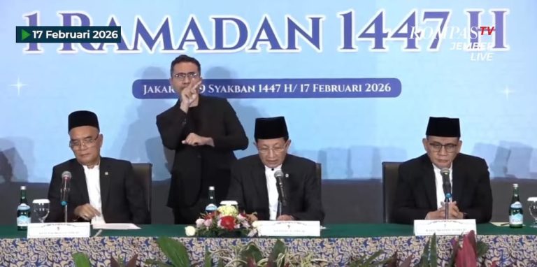 “Disepakati bahwa 1 Ramadan 1447 Hijriah jatuh pada hari Kamis, 19 Februari 2026. Demikian hasil Sidang Isbat yang baru kita laksanakan,” tutur Menteri Agama (Menag) Nasaruddin Umar di Hotel Borobudur Jakarta, Selasa (17/2).