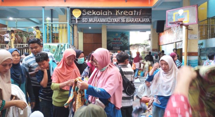 SURABAYA – Sekolah Kreatif SD Muhammadiyah 16 Surabaya menggelar kegiatan bakti sosial berupa bazar sembako murah dan sale bazar barang bekas berkualitas (barbeku), Sabtu (14/3). Kegiatan yang berlangsung di halaman sekolah ini merupakan agenda tahunan untuk menyemarakkan bulan suci Ramadan sekaligus membantu warga sekitar.
