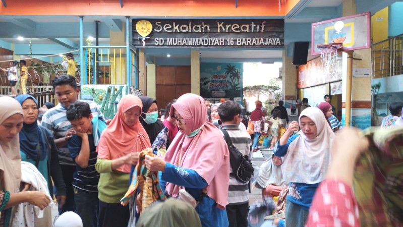 SURABAYA – Sekolah Kreatif SD Muhammadiyah 16 Surabaya menggelar kegiatan bakti sosial berupa bazar sembako murah dan sale bazar barang bekas berkualitas (barbeku), Sabtu (14/3). Kegiatan yang berlangsung di halaman sekolah ini merupakan agenda tahunan untuk menyemarakkan bulan suci Ramadan sekaligus membantu warga sekitar.